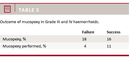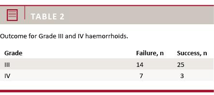 In the in the group with Grade III and IV haemorrhoids, the difference in treatment succes was not
