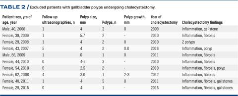 Age and sex were recorded at the time of the abdominal follow-up scan. Polyp size was measured during the follow-up ultrasonography. The number of polyps and cholecystolithiasis or other findings were noted. A true growth of a polyp was defined as 2 mm. For deceased patients, the national pathology database was checked to rule out gallbladder cancer. All examinations were performed by either sonographers (99%) or radiologists (1%) with 1-20 years of ultrasonography experience.
