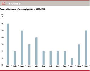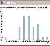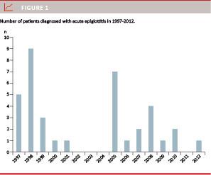 Material and methods: Medical records on all patients discharged with the International Classification of Diseases 10 diagnostic code DJ051, acute epiglottitis, from January 1997 to December 2012 were reviewed. A total of 41 patients were identified.