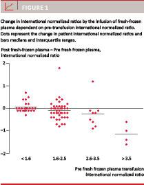 We found that post-transfusion INR was only significantly lower if pre-transfusion INR was between 1.6 and 2.5. A study by Holland and Brooks demonstrated that the potential benefits of FFP transfusion in terms of normalization of coagulation test results are minimal in patients with an INR below 1.7 [8]. The small sample size may be one reason why, contrary to expectations, we demonstrated no significant change in post-transfusion INR if pre-transfusion INR was above 2.5.