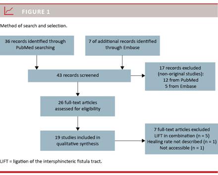Methods: The primary endpoints were healing rates, length of follow-up, time to recurrence and post-operative complications. The secondary endpoints were details of the operative technique. A search was made in the PubMed and Embase electronic databases. Reports where LIFT was combined with other fistula treatment techniques were excluded. Only reports in English were included. Most reports were case studies with no control groups. One report could not be retrieved.