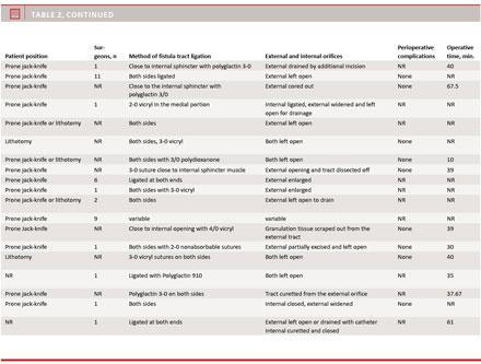 The LIFT procedure can probably be done in either the lithotomy or the prone jack-knife position without any effect on healing rates.