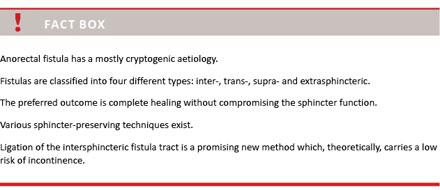 An anal fistula is an abnormal communication between the anal canal and the perianal skin. It is most commonly due to infection originating from the anal glands leading to formation of abscess and/or fistula (crypto-glandular theory). Anal fistulas can be intersphincteric, transsphincteric, suprasphincteric and extrasphincteric according to the course of the fistula tract in relation to anal sphincters [1]. The optimal treatment of fistula in ano is one that provides healing, has a low recurrence rate and carries only minimal risk of incontinence. Different methods of treatment of transsphincteric fistulas have shown varying recurrence and incontinence rates [2-6]. In 2007, Rojanasakul et al [7] described a novel procedure to treat anal fistulas that theoretically has a very low risk of anal incontinence. The authors reported a success rate of 94.4% in 18 patients. The procedure was named LIFT, the principles of which are identification and ligation of the fistula tract in the intersphincteric space. Several reports – with varying healing rates – have been published since the initial description of the ligation of the intersphincteric fistula tract (LIFT) procedure. We conducted a systematic review of the relevant literature on this topic.