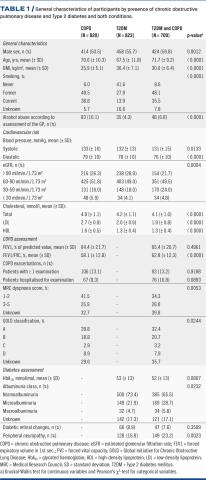 Our results show that the assessment of disease characteristics of COPD was more often missing in individuals with concomitant COPD and T2DM than in patients with COPD only. Patients with both COPD and T2DM also had the highest use of health resources and the highest prevalence of cardiovascular disease, albuminuria and peripheral neuropathy, the latter finding being in keeping with earlier observations [15, 16]. Even though a Dutch study conducted in a primary care setting failed to find any negative influence of COPD on the longitudinal progression of HbA1C in patients with diabetes, a recent Danish study suggested that use of inhaled steroids may be associated with an increased risk of developing diabetes [17-20]. Overall, our observations suggest that patients with both COPD and T2DM should be given additional focus.