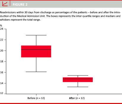 After the establishment of the MAU, the overall average length of hospital stay was reduced from 4.1 to 3.8 days (p < 0.01). No increase in mortality was seen – either in-house or within 30 days after discharge. A dramatic reduction in the overall number of readmissions within 30 days (approximately 25%) was seen.