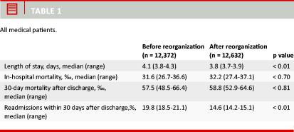 Results: After establishment of the MAU, the overall average length of hospital stay was reduced from 4.1 to 3.8 days (p < 0.01). No increase in mortality either in-house or within 30 days after discharge was seen. A substantial reduction (26%) in the overall number of readmissions within 30 days after discharge was observed.