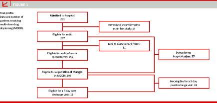 Ultimate MDDD identification was made for all patients by checking their PEM. Patients immediately transferred to other hospitals were not eligible for audit of medication lists records from patients and nursing home, neither from hospital case record forms. Similarly, contact to the delivering primary pharmacy on admission to hospital was not possible for this group of MDDD patients. Furthermore, registration of changes in MDDD medication was not possible for patients who died during hospitalization.