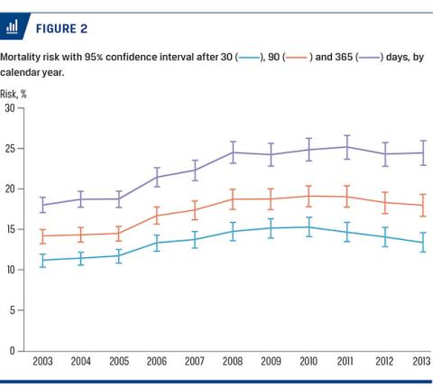 Vester-Andersen M, Lundstrøm LH, Møller MH et al. Mortality and postoperative care pathways after emergency gastrointestinal surgery in 2904 patients: a population-based cohort study. Br J Anaesth 2014;112:860-70.