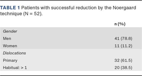 CONCLUSIONS: The Noergaard technique seems to be a safe and atraumatic reduction technique that involves no physical manipulation of the affected limb. Based on our results and experience, we recommend the use of this technique as first line of treatment in anterior shoulder dislocations.