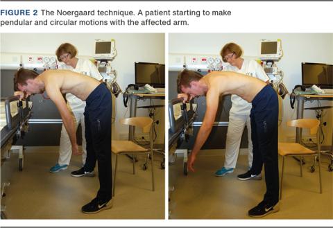 METHODS: We reviewed the charts of all patients admitted with anterior shoulder dislocation (n = 151) at the ED. In the Noergaard technique, the patient is placed standing, bent over forwards in front of the rail on a hospital bed, resting the forehead on the back of the non-affected forearm, which is placed on the rail. The affected arm should now be relaxed and stretched, hanging straight down towards the floor. The patient is then instructed to relax as much as possible and make pendular and circular motions with the affected arm hanging down.