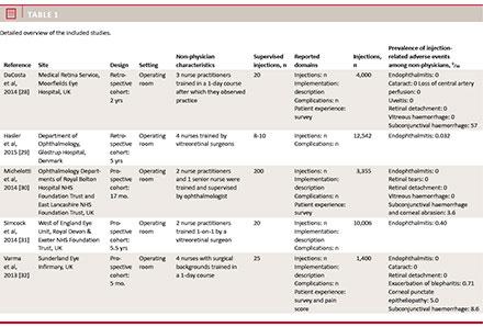 22 September 2015. We used the following search strategy: (nurse OR orthoptists OR optometrist OR non-physician) AND (intravitreal).