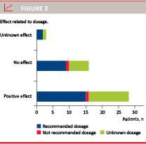 The 43 patients had used a total of 22 different OTC drugs divided on 55 consumptions and 17 different indications (Table 1, Figure 2 and Figure 3). The patients who had taken more than one drug are mentioned in all the ATC groups of the involved drugs. The consumed drugs are referred to by their generic name. For detailed information about consumption and indication related to each OTC drug, please refer to Table 1. Figure 2 shows dosage and effect related to the indication and Figure 3 shows the effect of the intake related to dosage.
