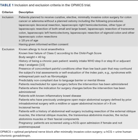Implementation of laparoscopic surgery and standardised ERAS protocols has significantly improved patient outcomes. Focus on multimodal pain management may potentially further improve these outcomes. Since the introduction of US-TAP, many reports have been published but no consensus has been reached regarding the optimal technique, where to and when to apply the block or which drug to use. By optimising post-operative pain management with peripheral nerve blocks, we may potentially improve important clinical outcomes, e.g. post-operative opioid consumption and pain. Metanalyses have shown statistically significant reductions in opioid consumption when TAP is compared with wound infiltration or placebo [11, 12], but the reported reductions of 1-3 mg in opioid consumptions have no clinical relevance. To ensure generalisability, we have designed a pragmatic multicentre trial to determine the clinical efficacy of TAP in minimally invasive colon surgery.