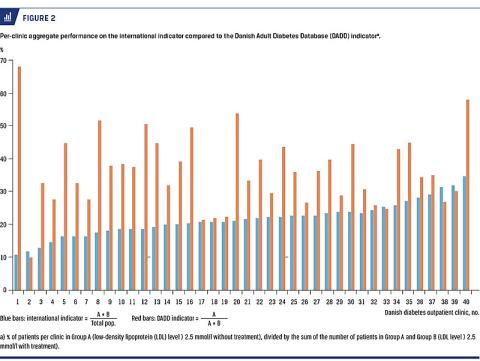 Internationally, it is most common to measure performance of a well-validated intermediate outcome, such as: “The fraction of type 2 diabetic patients ≥ 40 years old with an LDL cholesterol > 2.5 mmol/l”. Using this international indicator has been shown to improve care and cardiovascular outcomes for T2DM patients [9-11], and the indicator is now widely used in the US, Canada, The UK, the Netherlands, Sweden and Norway. However, The Danish Adult Diabetes Database (DADD) has used another indicator since 2010: “The fraction of type 2 diabetic patients ≥ 40 years old with an LDL cholesterol > 2.5 mmol/l who do not receive lipid-lowering treatment”. In contrast to the international indicator, the DADD indicator has not been validated against intermediate or hard endpoints.