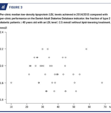 METHODS: A) A pop-up questionnaire enquiring about reasons for lack of treatment was added to the clinicians’ data entry tool in the Central Denmark Region. B) The DADD indicator was compared on a per-clinic basis with the achieved median low-density lipoprotein (LDL) cholesterol level and with an internationally widely used indicator of lipid-lowering treatment quality.