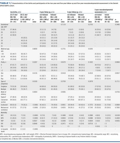 Owing to advances in perinatal care, survival of extremely (22 + 0 – 27 + 6 weeks) and very preterm (28 + 0 – 31 + 6 weeks) children has increased in recent decades [1]. Follow-up programmes and assessments for extremely and very preterm birth differ between regions in Denmark. Lately, a steering group in the Danish Paediatric Society presented suggestions for a new national guideline on follow-up for extremely preterm children. In continuation of this work, the aim of the present study was to investigate the outcomes and follow-up programmes for children born very and extremely preterm in a Danish sub-cohort of the European project Effective Perinatal Intensive Care in Europe (EPICE) cohort and the project Screening to Improve Health in Very Preterm Infants in Europe (SHIPS) [2]. In addition, this study investigated parental reporting and validated tests administered by professionals as follow-up tools for extremely and very preterm children and established how these correlated.