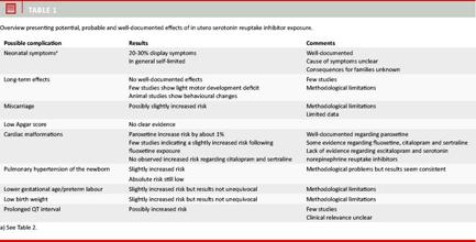 An overview of potential, probable and well-documented effects on the child following in utero SRI exposure is presented in Table 1 and the results are discussed in detail below.