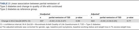 Association between partial remission of Type 2 diabetes and changes in quality of life