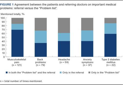 CONCLUSIONS Doctors and patients rarely agree on the patients’ health problems. Patient engagement such as co-production of care may potentially produce the time and resources needed to help doctors identify the patients' priorities and describe them in referrals.
