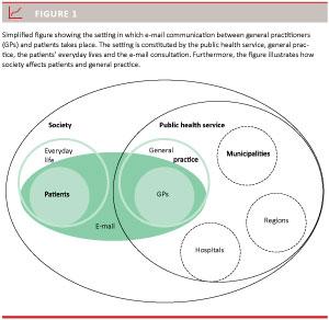 GPs’ e-mail communication is affected by their working life, everyday life and the health care that general practice forms part of. Moreover, it is governed by authorities that also want to influence the GP’s work (Figure 1 and Figure 2). Furthermore, general practice is an independent profession affected by market thinking, where profits, staff and customer orientation are important.