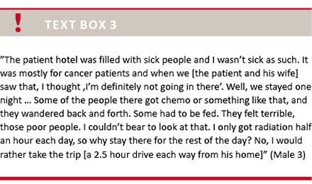 Most participants wished to “stay normal” throughout the course of disease. Participants of both sexes had no great need to talk about their disease and “just wanted it over and done with”. Trying to regain an active lifestyle was part of keeping “business as usual”.