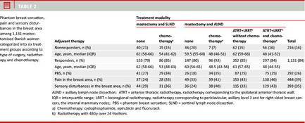 Every year approx. 4,000 Danish women are diagnosed with breast cancer. This incidence is likely to increase owing to the introduction of a nationwide breast cancer screening programme in 2008 [1]. About 30% of these women still undergo mastectomy [2] although conservative breast cancer surgery has become the standard treatment for certain tumour stages. Previous studies have shown that mastectomised women experience various postoperative sequelae including phantom breast sensation (PBS) in 10-66% of cases [3, 4]. An analysis of 29 studies (25 studies reporting PBS) published in the period from 1950 to 2007 showed that early studies reported a significantly higher PBS prevalence than later studies [5], which indicated a need for more large studies based on well-defined modern principles of treatment.