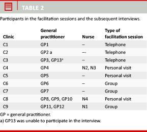 Material and methods: This study is based on observations of facilitation sessions and interviews with the health professionals (13 GPs, four nurses, one endocrinologist) participating in a facilitation project in the Capital Region of Denmark.