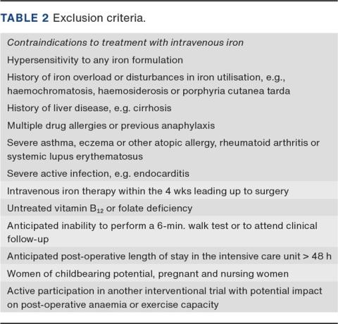 Anaemia is a well-established independent risk factor for adverse cardiovascular events in the general population and particularly in patients with cardiovascular diseases. Prior to cardiac surgery, anaemia is present in approximately every fourth patient [1, 2]. Preoperative anaemia has been found to be a powerful predictor of adverse outcome after cardiac surgery [3]. At hospital discharge, anaemia is almost invariably present due to pre-existing anaemia, perioperative blood loss, blood sampling and inadequate nutritional intake [4]. Post-operative anaemia has been shown to prolong hospital stay and increase the rate of major adverse cardiovascular events [4]. Debilitating symptoms of anaemia like dyspnoea, fatigue and poor exercise tolerance represent serious obstacles to rehabilitation and patient well-being [4, 5]. Importantly, iron deficiency treatment has been shown to improve the well-being and physical performance of chronic heart failure patients, even in the absence of anaemia [6].