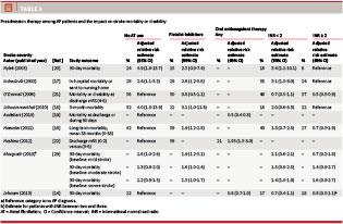Introduction: Information about the effect of preadmission oral anticoagulant therapy (OAT) on stroke outcome in patients with atrial fibrillation (AF) is scarce. A systematic review was done of the existing data on the association between preadmission OAT and stroke outcome in patients with AF.