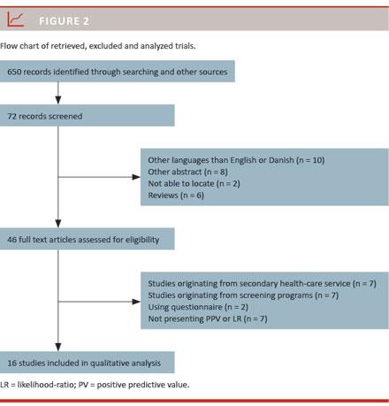 Methods: This study is based on a literature search performed in PubMed, Embase, the Cochrane database and at ClinicalTrials.gov in accordance with the PRISMA guidelines. The main outcome measure used was PPV.