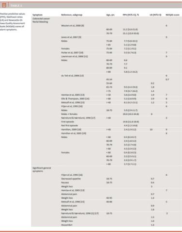161-4.Fijten GH, Starmans R, Muris JW et al. Predictive value of signs and symptoms for colorectal cancer in patients with rectal bleeding in general practice. Fam Pract 1995;12:279-86.