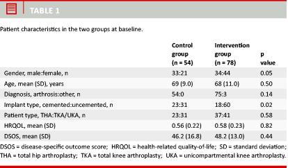 Control group patients received no formal preoperative screening for risk factors and received no intervention in the period from the first visit at which arthroplasty was decided to surgery.