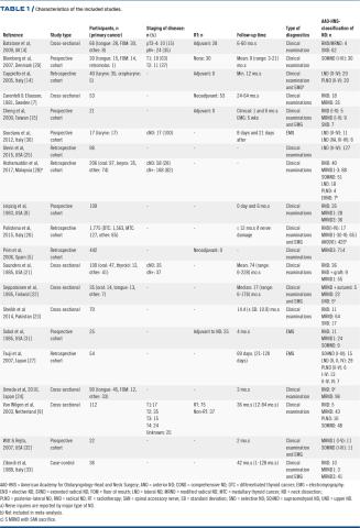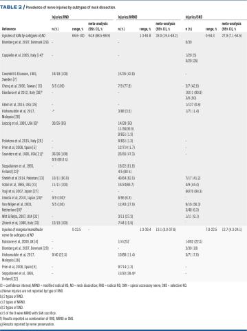 Conclusions: This meta-analysis estimated a high prevalence of SS, SAN and MMN injuries following the three main types of ND. If oncological considerations allow it, the less morbid ND should be considered. MMN injuries have only been reported in a limited number of small studies. The results may be used to compare future research and as guidance for quality evaluation within departments.