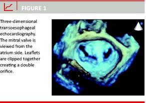 Franzen et al from Hamburg, Germany, published 30-day follow-up data for 51 patients who had considerably higher co-morbidity than patients studied in the EVEREST II study [9]. Patients had a reduced LVEF function (35%) and the majority had functional MR (70% functional and 30% degenerative). MR was reduced by one grade in 33%, two grades in 49% and three grades in 18% of the patients. Accordingly, NYHA function class improved by one grade in 61% and two grades in 29% of the patients. Similar results were reported from Italy in a patient population somewhere between those of the EVEREST and the Hamburg publication (LVEF 40% and 58% with functional MR) [10].