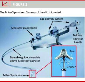 In the EVEREST II trial, 279 patients eligible for MR surgery were randomised 2:1 for MitraClip treatment or surgery. Patients were symptomatic with an MR grade of 3-4 and LVEF > 25%. Certain criteria for mitral valve morphology (length and depth of coaptation and degree of prolapse) were established to ensure the technical feasibility of the MitraClip treatment [12]. The type of MR was 70% degenerative and 30% functional. The study showed that MitraClip treatment could be done with a lower risk than surgery (mortality and stroke risk of 2.5% in the surgical group versus zero in the MitraClip group), but at the expense of a slightly lower clinical benefit: 66.9% versus 74.2% (composite endpoint including death, MR surgery, re-surgery and MR < grade two). Both treatments showed a similar reduction in left ventricular volume, NYHA function class and quality of life [8].