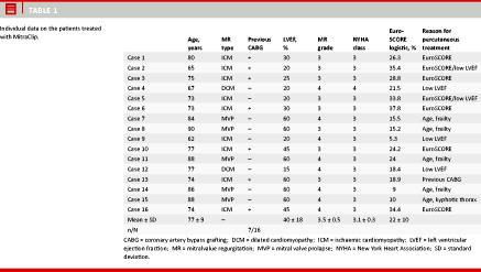 Material and methods: Sixteen patients with MR of various origins (functional/degenerative) were treated with the MitraClip system. All patients were highly symptomatic with dyspnoea (New York Heart Association (NYHA) grade three) and MR grade three or more, and had been turned down for surgery due to an excessively high risk.