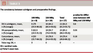 Fisher’s exact test was used for testing difference in consistency between scintigram and perioperative findings according to the two different doses of 99mTc-traced colloid.