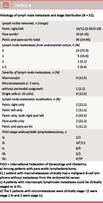 Fotopoulou C, Savvatis K, Kraetschell R et al J. Systematic pelvic and aortic lymphadenectomy in intermediate and high-risk endometrial cancer: lymph-node mapping and identification of predictive factors for lymph-node status. Eur J Obstet Gynecol Reprod Biol 2010;149:199-203.