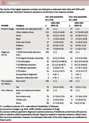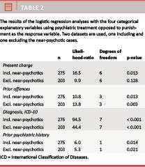 Earlier studies show that although some non-psychotic offenders are referred to psychiatric settings [1, 2], most are sentenced to ordinary punishment [3]. In 1993, Kørner et al [4] found that the more serious the psychiatric diagnosis and the less severe the present offence and the criminal history, the higher was the possibility of being recommended a treatment measure instead of punishment.
