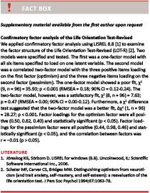 Responses were rated on a seven-point scale from 1-7 with higher scores indicating a higher perceived social support. The ten-item General Self-Efficacy Scale (GSE) was used to assess general self-efficacy, i.e. the belief that one’s actions are responsible for successful outcomes [14]. The response format ranges from one to four with higher scores representing a greater general self-efficacy. Based on confirmatory factor analysis (data available from the first author), the Life Orientation Test-Revised (LOT-R) [15] was used to measure dispositional optimism and pessimism as two separate constructs rather than a unidimensional construct, see also [16]. The scale includes four filler items and six items measuring generalised expectancies for positive (three items) and negative (three items) outcomes. Responses are rated on a five-point scale ranging from 0-4 with higher scores representing greater optimism/pessimism.