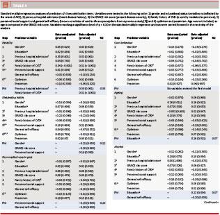 Simple linear regression (unadjusted Beta) and standard multiple regression (adjusted Beta) were applied. To avoid including variables with little relation to the outcome variable while accounting for the sample size, a significance level of p < 0.10 was used to decide which variables to carry forward in the adjusted analyses. In line with Aalto et al [6], variables were assessed according to a temporal (before versus simultaneously with the study), personal (own versus socially mediated experiences) and conceptual (disease-specific versus generic factors) order. A significance level of p < 0.05 was used to evaluate the statistically significant unique contribution of each variable in the final models. All analyses were performed with SPSS Version 20 (SPSS Inc., Chicago, Illinois, USA).
