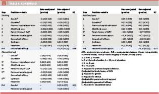 Due to somewhat strict inclusion criteria, the present findings should only cautiously be applied to older ACS patients and ethnic minority patients [9]. Also, given the cross-sectional nature of the study, we cannot rule out that the self-reporting on psycho-social measurements may, to some extent, have been influenced by being hospitalised and the illness perceptions associated with this event. Furthermore, not all patients had their heart rate and systolic blood pressure recorded at presentation; thus, the GRACE risk score could only be calculated for 85 patients. Finally, in models testing attribution of illness to poor medical care in the past, alcohol, smoking and accident/injury, minor deviations from normality were seen. Thus, caution should be exercised when generalising these findings.