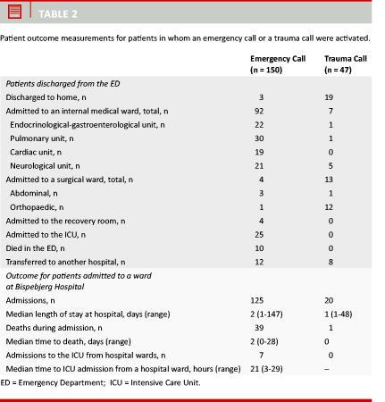 Table 2 shows outcome data of emergency calls and trauma calls.