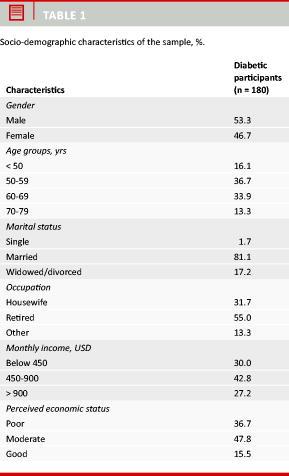 Material and methods: A total of 180 patients diagnosed with type II diabetes and registered at an urban primary health care unit in Turkey were included to this study.
