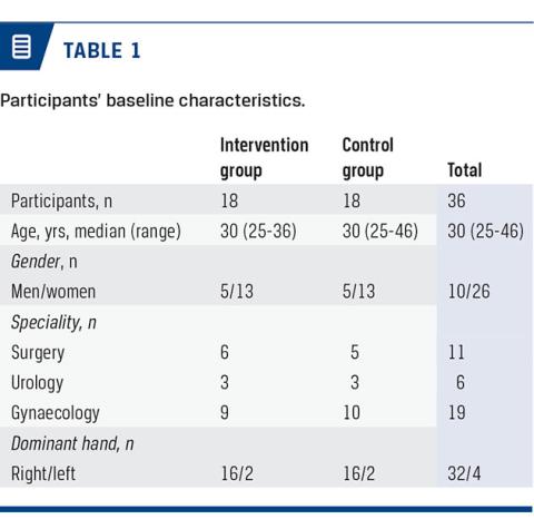The course participants consisted of doctors in the first year of their speciality training. Participants who had performed more than fifty laparoscopic procedures were excluded.