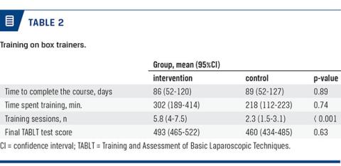 METHODS: Participants were trainees from departments of surgery, gynaecology and urology who were recruited while taking part in a laparoscopic training course. The intervention consisted of added access to a mobile box trainer allowing participants to train at home.