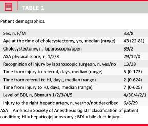 In summary, 41 consecutive patients underwent primary HJ repair for cholecystectomy-related BDI in the period 1994-2008 with an incidence of short- and long-term complications of 34% and 24%, respectively, and a median follow-up period of 9.2 years.