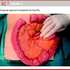The survival of the jejunal segment is monitored by use of microdialysis [6]. An exteriorized jejunal monitoring segment, which can be inspected at the front of the neck, works as a surveillance backup [7]. The jejunal monitoring segment consists of a minor jejunal segment which does not form part of the reconstruction, but shares blood supply with the segment engaged in the reconstruction. The microdialysis catheter and the exteriorized segment are removed five to seven days after surgery.