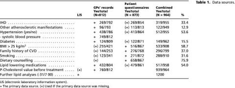 The data presented on smoking, height and weight, and data on lipid-lowering diet, originate from patients, as it was difficult to get valid information from GPs' records. Information on lipid-lowering medications, IHD and other risk factors was collected from medical records and if not available from patient questionnaires.