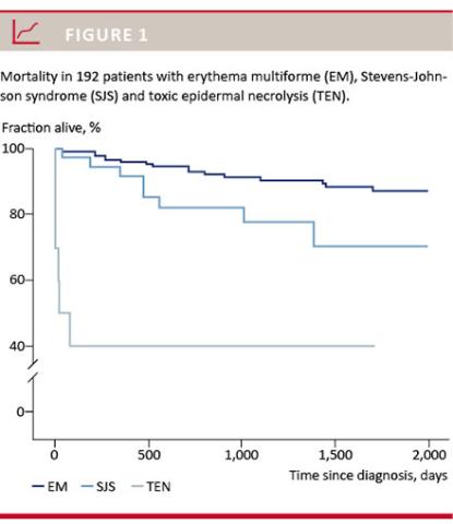 Sekula P, Dunant A, Mockenhaupt M et al. Comprehensive survival analysis of a cohort of patients with Stevens-Johnson syndrome and toxic epidermal necrolysis. J Invest Dermatol 2013;133:1197-204.